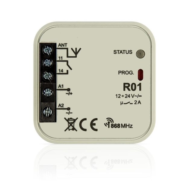 Il modulo R01 può essere utilizzatoin abbinamento al modulo F4IN per azionare porte garage, cancelli, e dispositivi similari.